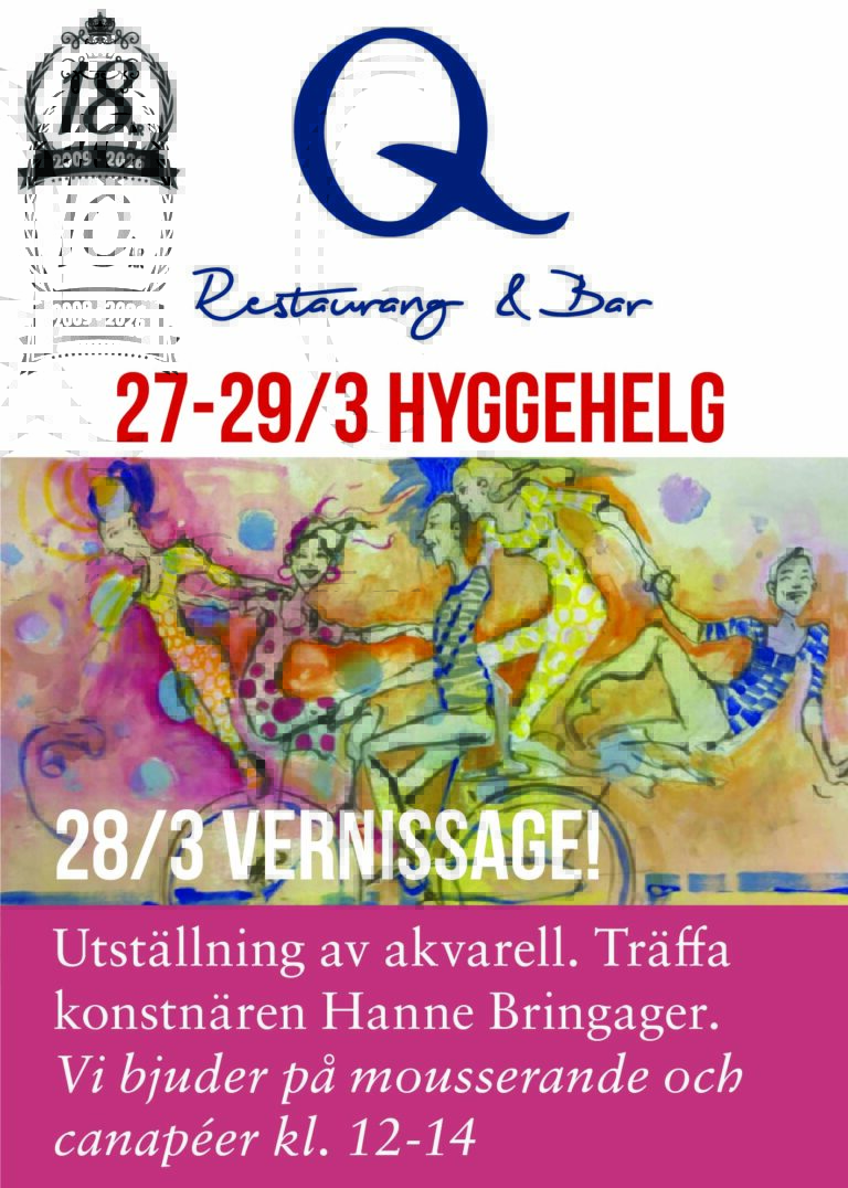 Under Hyggehelgen har vi den 28. mars Vernissage – möt Hanne Bringager och se hennes akvareller. Välkommen till Hyggetreff – vernissage. Vi serverar Bubbel och